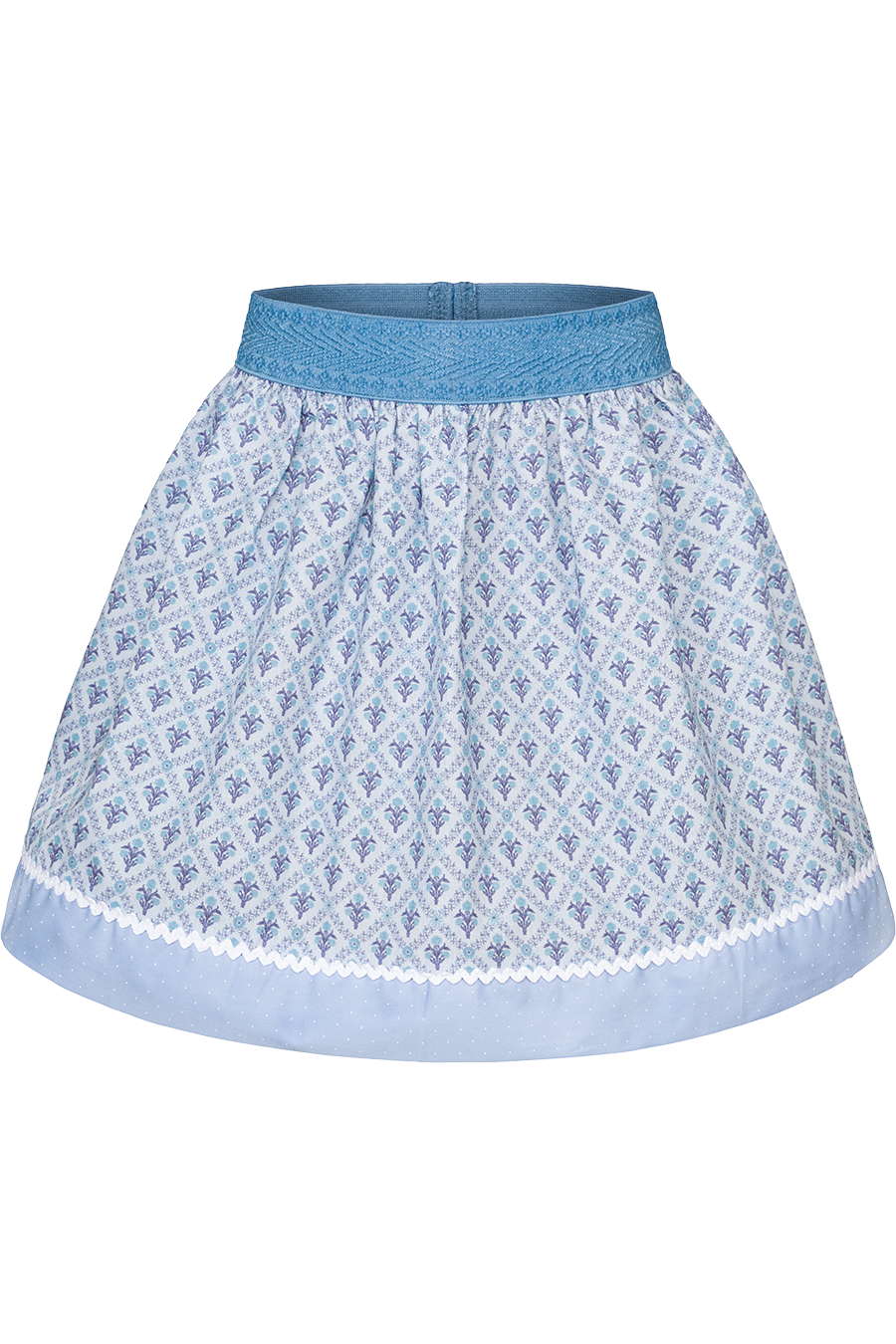 Der Saum wird von einer kontrastfarbigen Häkelborte charmant eingerahmt, während der untere Abschluss mit einem fein abgestimmten Punktestoff verziert ist – ein liebevolles Detail, das sofort ins Auge fällt. Der elastische Bund sorgt nicht nur für einen bequemen Sitz, sondern auch für ein unkompliziertes An- und Ausziehen – perfekt für aktive Trachtenkinder, die sich wohlfühlen und frei bewegen wollen.
