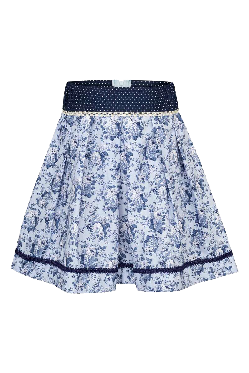 Hatte Ihre Tochter schon einmal so einen schicken und hübschen Rock?Der Rock ist mit wunderschön verschnörkelten Paspeln sowohl am Bund als auch oberhalb des Saums verziert. Mit dem hellblauen Blumenmuster und dem robusten Stoff aus reiner Baumwolle wirkt er nicht nur sehr edel, sondern ist auch wirklich sehr hochwertig verarbeitet. Zudem ist er somit aus reiner Naturfaser gefertigt.Diesen Rock können Sie Ihrem Schätzchen ruhig auch 2-3 Größen größer kaufen und den Saum zunächst einmal nach innen mit ein paar Stichen umnähen. So passt der Rock Ihrer Tochter länger und Ihr Spatz wird einige Jahre Freude an diesem tollen Rock haben. Die Investition in diesen wirklich qualitativ hochwertigen, wunderschön romantisch verträumten Rock für Ihre Prinzessin lohnt sich also.Sicher wird Ihr Spätzchen diesen Rock so schnell nicht mehr hergeben!Die Rocklänge in Größe 110 beträgt 31 cm.