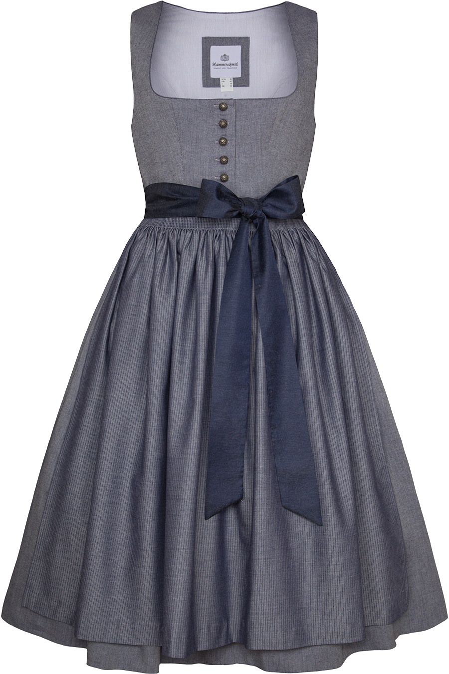 Der in Falten gelegte Rock aus dem gleichen weichen Material wie das Mieder besitzt zwei praktische, versteckte Eingrifftaschen. Die dazugehörige Schürze im dezenten Streifendesign mit unifarbenem Schürzenband rundet das Gesamtbild harmonisch ab.