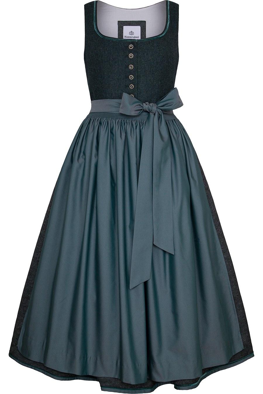 Das lange KOFLERSEE Dirndl von Hammerschmid vereint hochwertige Materialien mit zeitloser Eleganz. Das Mieder mit hohem Wollanteil schmiegt sich dank des Stretchanteils im Oberstoff und Futter perfekt an und sorgt auch an langen Festtagen für höchsten Tragekomfort. Edle, verzierte Knöpfe vorne mittig und ein feiner Samtstreifen entlang des runden Ausschnitts setzen besondere, traditionelle Akzente.