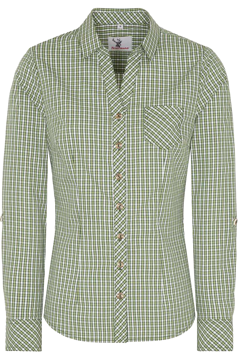 Die lange Damenbluse NECKAR von Spieth & Wensky besitzt durch das klassische kleine Karomuster einen besonderen rustikalen Touch. Die Knopfleiste beginnt unterhalb eines kurzen V-Ausschnittes und ist mit Knöpfen in Hornoptik gefertigt. Das Karo ist auf der Knopfleiste, den Ärmelmanchetten und der Brusttasche gedreht, was einen schönen sanften Kontrast bildet.Auch in den großen Größen ist die Bluse sehr auf Taille geschnitten!