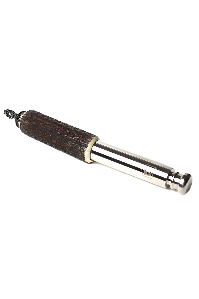 Wer braucht heute noch einen Hirschfänger? Das Trachtenflascherl Bayerischer Löwe ist die zeitgemäße Ausrüstung für die Messertasche an Ihrer zünftigen Lederhose! Liebevoll in Handarbeit aus echtem Hirschhorn gefertigt hat sie Platz für 4 cl Füllung (zwei Schnapsgläser), ideal zum „Vorglühen" oder zum Aufwärmen beim Eisstockschießen. Die Bavaria als Abschlussfigur ist aus hochwertigem, versilbertem Feinguss hergestellt. Ein echter Hingucker mit praktischem Nutzwert.