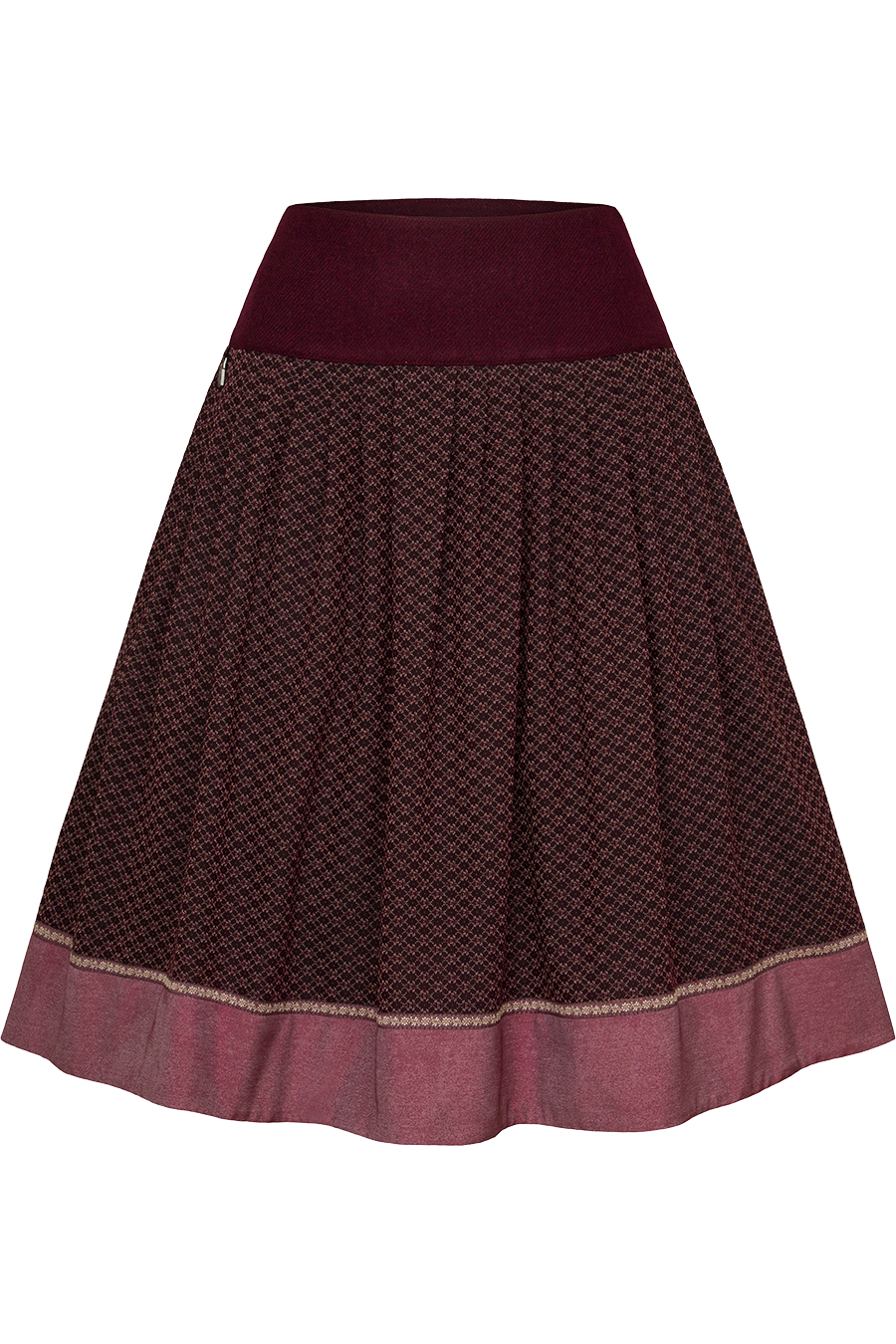 Trachtenrock PASSAU von Hammerschmid vereint traditionelle Handwerkskunst mit stilvoller Eleganz. Der breite Bund mit hohem Wollanteil sorgt für angenehmen Tragekomfort und eine perfekte Passform. Der ausgestellte Jacquardrock mit feinem Muster schwingt bei jedem Schritt elegant mit.
