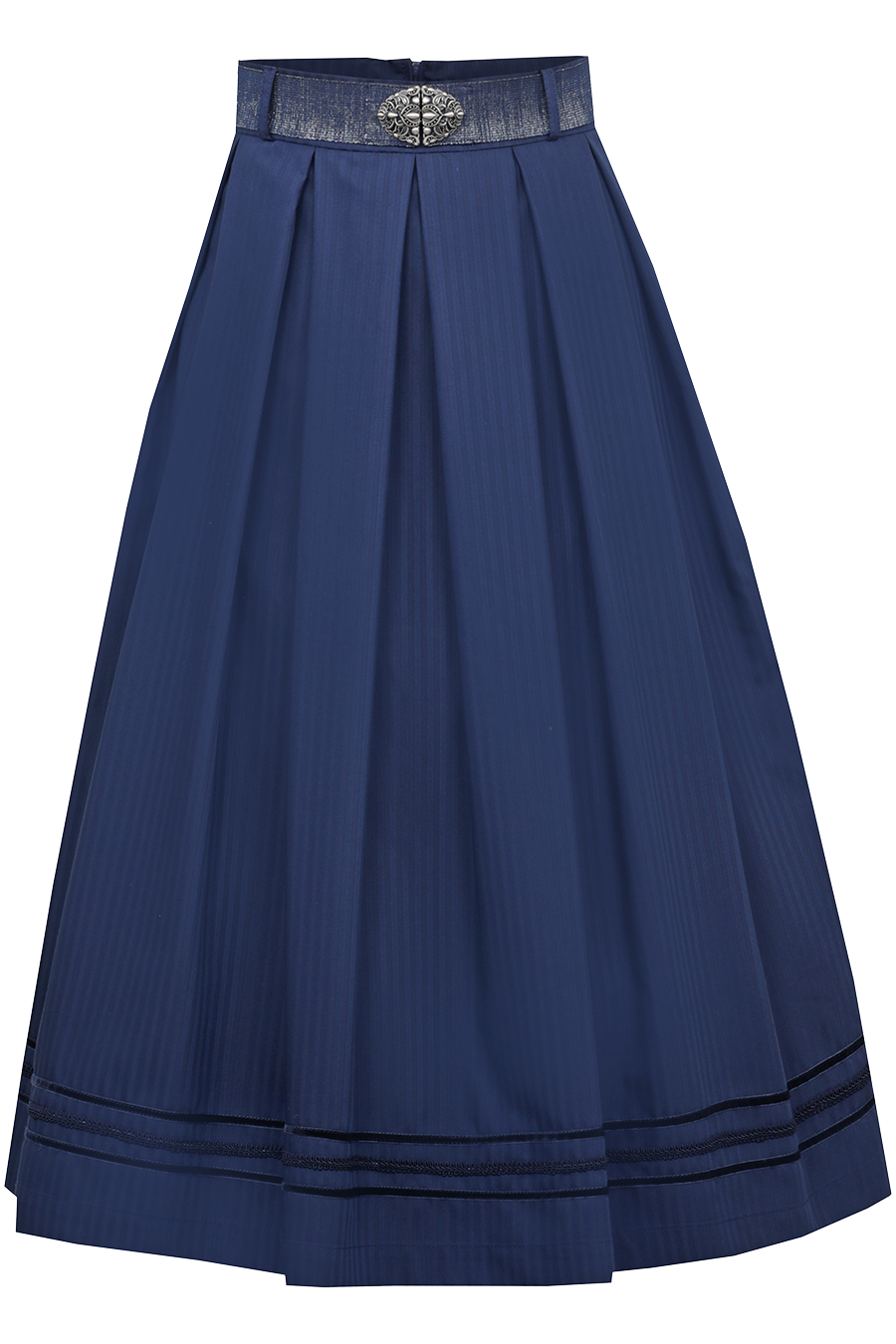Dieser festliche Trachtenrock SIEGSDORF/75 in Midilänge überzeugt durch seine dezent schimmernde Streifenstruktur, die bei jedem Schritt wunderschön zur Geltung kommt. Liebevolle Details wie zierliche Samtbänder und eine fein gearbeitete Stickbordüre oberhalb des Saums verleihen dem Rock eine besonders geschmackvolle Note.