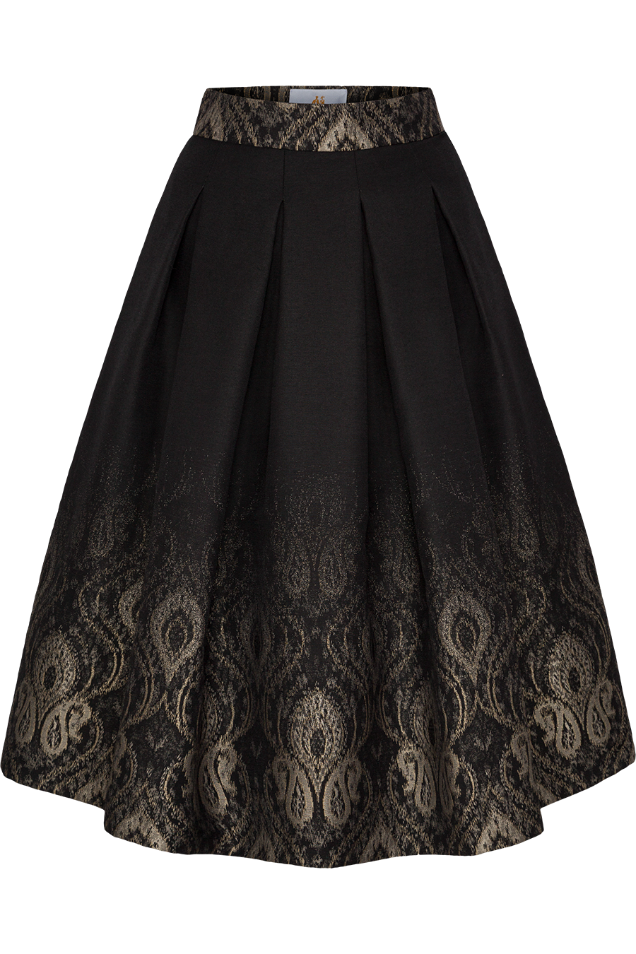 Der wunderschöne Trachtenrock FAITH von Wenger in Midi-Länge überzeugt durch sein edles Jacquardmuster in orientalischer Optik, das in einem feinen Farbverlauf gestaltet ist und sich elegant am Bund wiederholt.