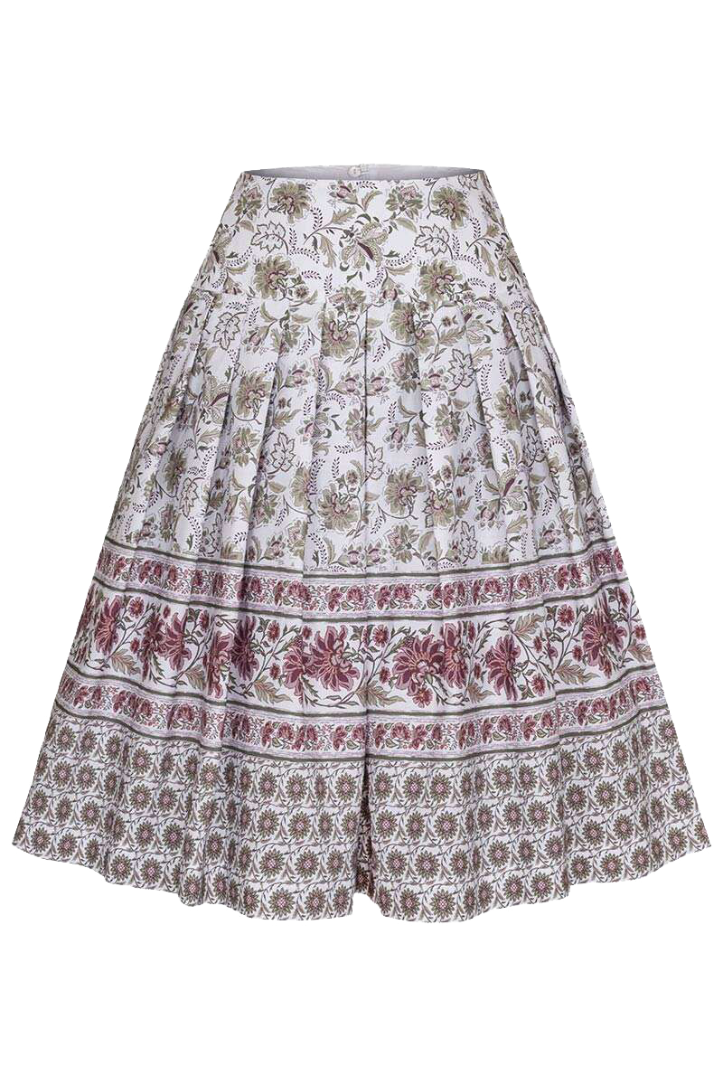 Er ist in Weiß gehalten und mit einem hübschen Blumenmuster in Oliv und Bordeaux verziert, was ihn zeitlos klassisch und elegant wirken lässt. Dieser Rock passt sowohl im Frühling als auch im Sommer. In Kombination mit einer schönen Trachtenbluse und einer Trachtenjacke ist er eine wunderbare Alternative zum Dirndl.