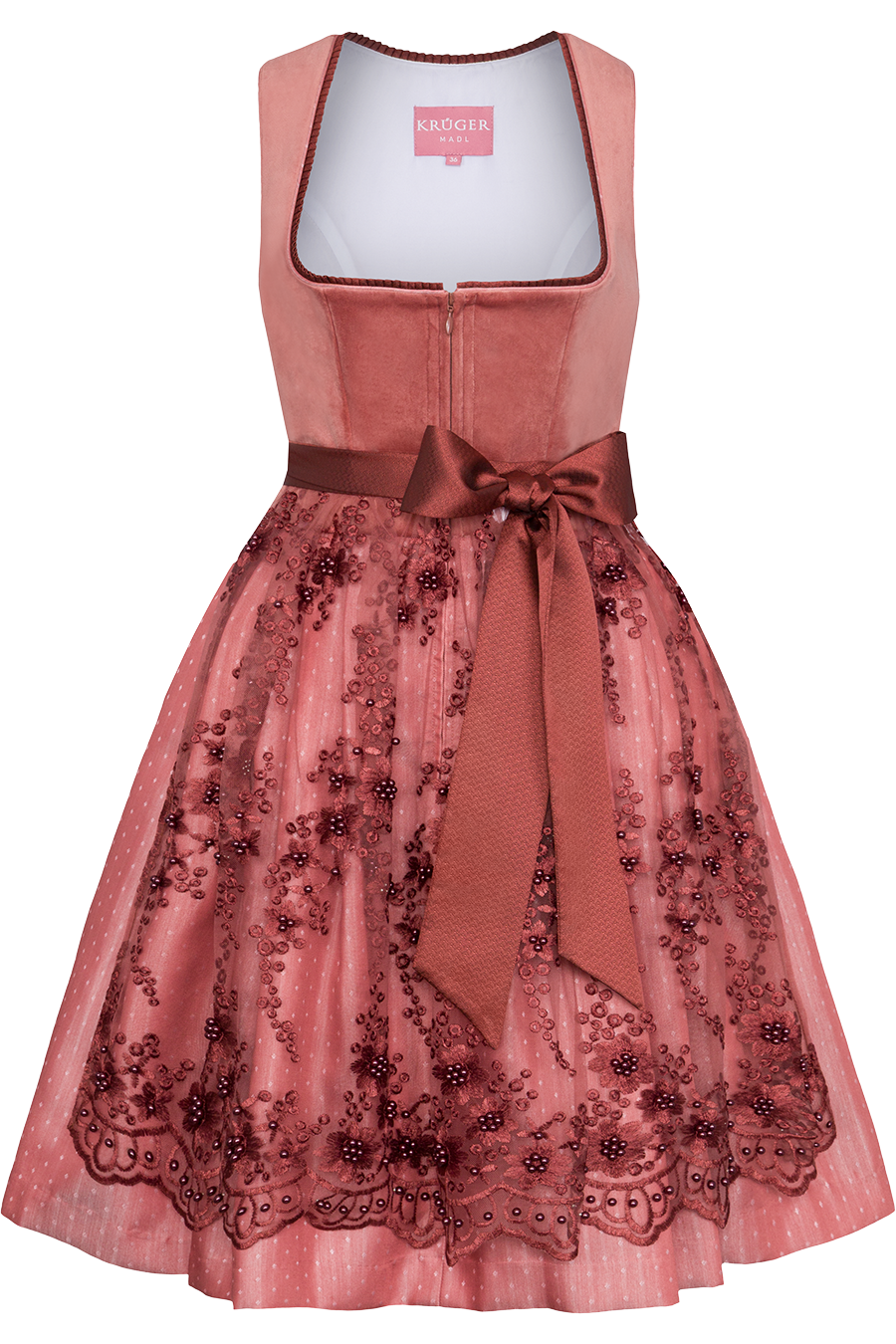 Ein femininer Blickfang mit liebevollen Details – das Damen-Mini-Dirndl von Krüger verbindet edle Materialien mit stilvoller Raffinesse.