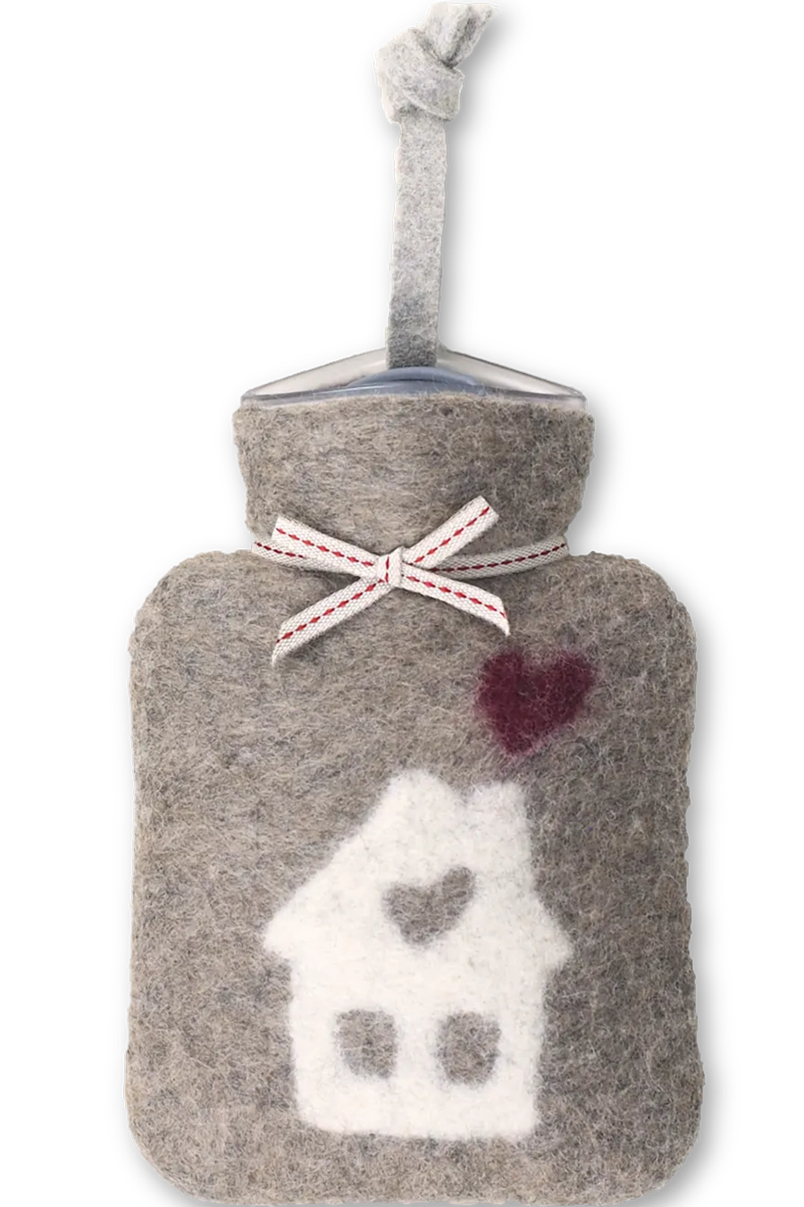 Wollfilz-Mini-Wärmflasche mit Hausmotiv